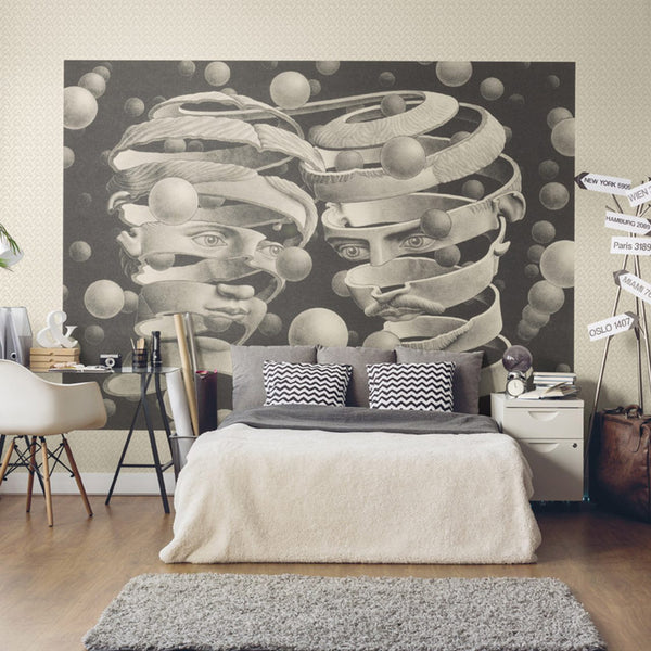 We are delighted to launch Designer Wallcoverings MC Escher Collection. A rare opportunity to enjoy the groundbreaking designs from the father of pop art. Legendary for his abstract work and a hugely important influence for artists such as Brigit Riley, Escher is famous for his recurring patterns, labyrinths and illusions. Cubes and Spheres have a mesmerizing 3D effect and bring contemporary, engaging images to enjoy in your own space. A titan among graphic artists, an awesome addition to any room.