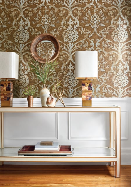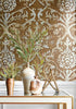 Pravata Damask Wallcovering - Sienna on Foil | Thibaut Design