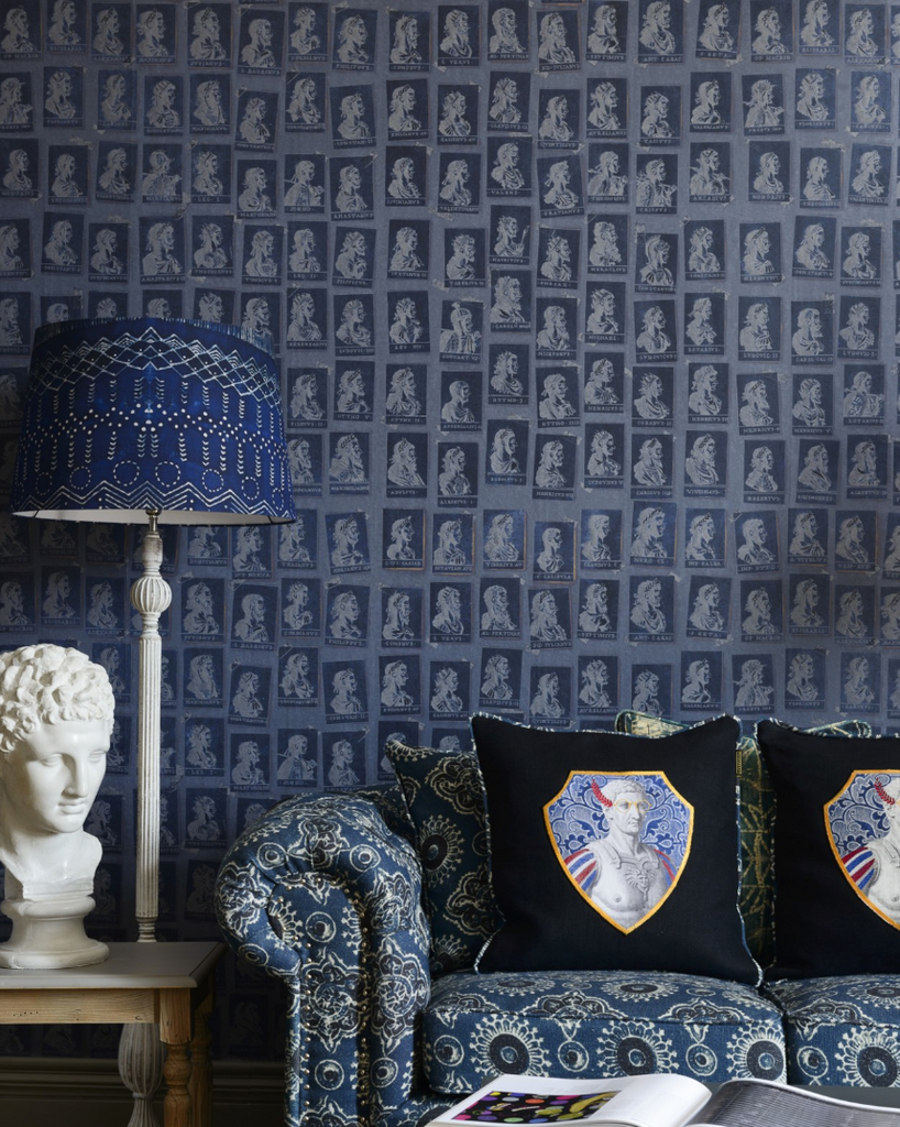 This unique wallpaper design illustrates120 hand drawn portraits of the all Roman emperors who once lived and conquered the world. A very special mural style wallpaper designed on 3 rolls for maximising the pattern repetition. Available on three colour option: anthracite, khaki and indigo. All Mind The Gap wallpapers are made on new generation non-woven substrate. Printed with eco-friendly inks, Mind The Gap wallpaper are easy to install on any wall type. When hanging the wallpaper, apply the ready-mix adhesive paste on the wall and hang the strips one by one by butting the edges together. The adhesive allows for a while moving the wallpaper strips, so that the wallpaper pattern continues correctly from one strip to another. All our wallpapers are tested and certified for fire rating according to the international legislation. More information and official reports regarding the fire rating are available on demand.