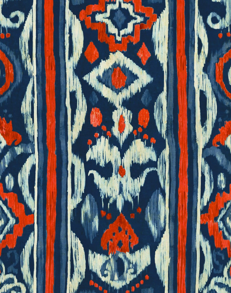 Wavy shades of blue and red dance against a deep indigo background, in an authentic Greek Ikat pattern that manifests local traditions. With big handmade strokes of colour, the pattern gives a spectacular visual impact, adding richness and Mediterranean style to any interior. All Mind The Gap wallpapers are made on new generation non-woven substrate. Printed with eco-friendly inks, Mind The Gap wallpaper are easy to install on any wall type. When hanging the wallpaper, apply the ready-mix adhesive paste on the wall and hang the strips one by one by butting the edges together. The adhesive allows for a while moving the wallpaper strips, so that the wallpaper pattern continues correctly from one strip to another. All our wallpapers are tested and certified for fire rating according to the international legislation. More information and official reports regarding the fire rating are available on demand.