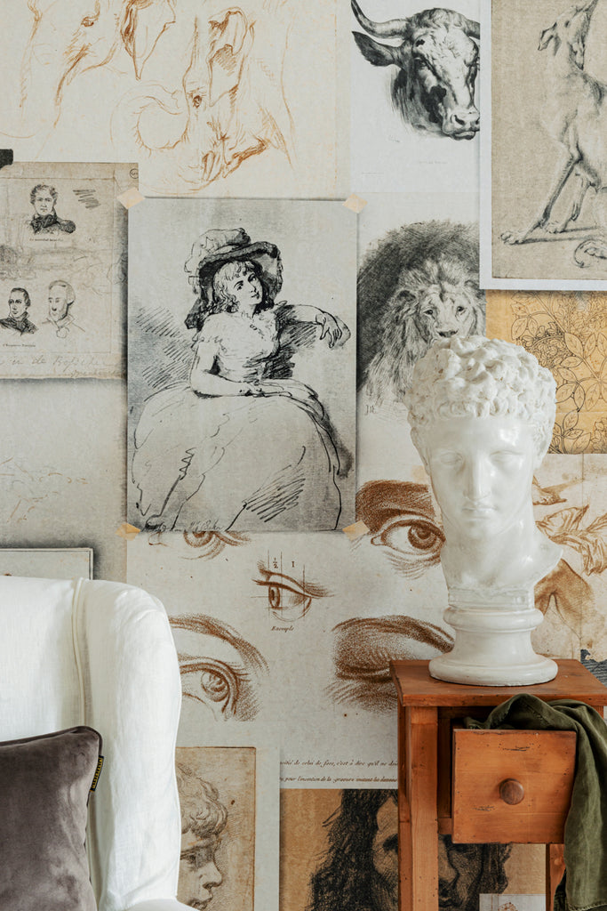 sticking, with the pattern echoing the tactility of paper affixed to the wall. Hand drawn studies of