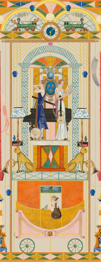 Enveloped in art deco glamour and opulence, PARTY NIGHT carries an air of sophistication as guests don their finest attire to enjoy the musical festivities onboard. The harmonious sound of instruments echo through the evening while the beautiful architecture of the station provides the perfect backdrop for this stylish occasion. Geometric forms and alluring colours merge, captivating the attention of the viewer and transporting you there in spirit as you imagine the ambience drawing you in as the excitement begins to develop. All Mind The Gap wallpapers are made on new generation non-woven substrate. Printed with eco-friendly inks, Mind The Gap wallpaper are easy to install on any wall type. When hanging the wallpaper, apply the ready-mix adhesive paste on the wall and hang the strips one by one by butting the edges together. The adhesive allows for a while moving the wallpaper strips, so that the wallpaper pattern continues correctly from one strip to another. All our wallpapers are tested and certified for fire rating according to the international legislation. More information and official reports regarding the fire rating are available on demand.