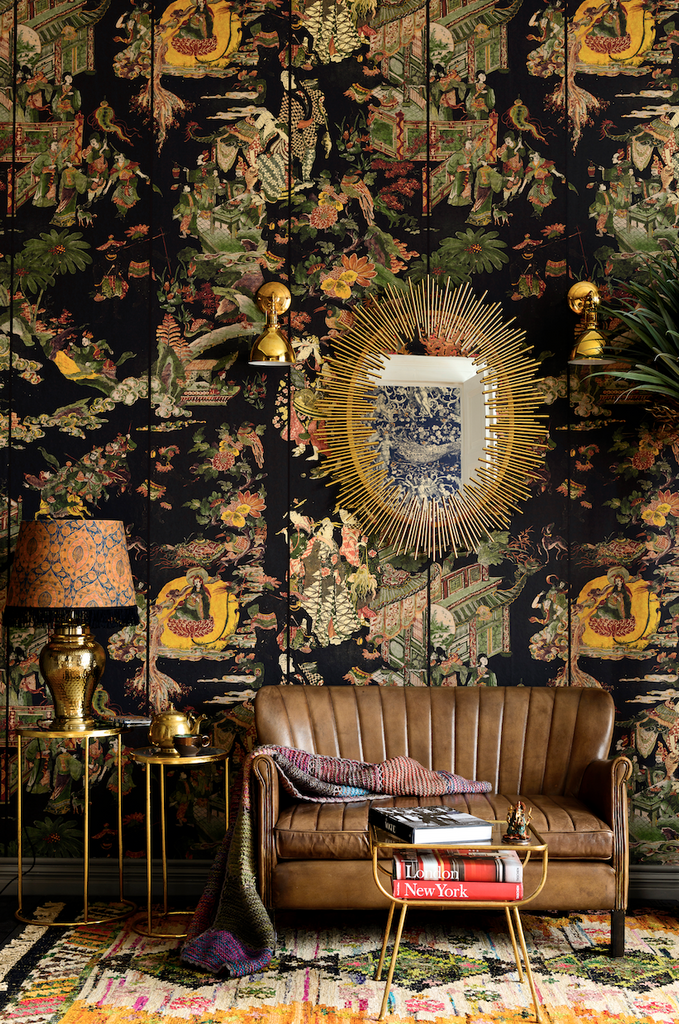 THE ORIENTAL TALE by Mind the Gap showcases exotic birds, lush florals, and rich hues in a timeless, scenic design. #luxuryinteriors #wallart #designinspiration