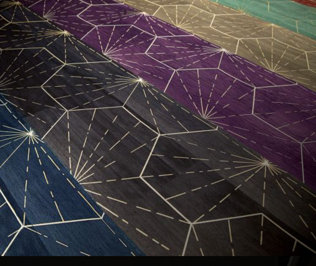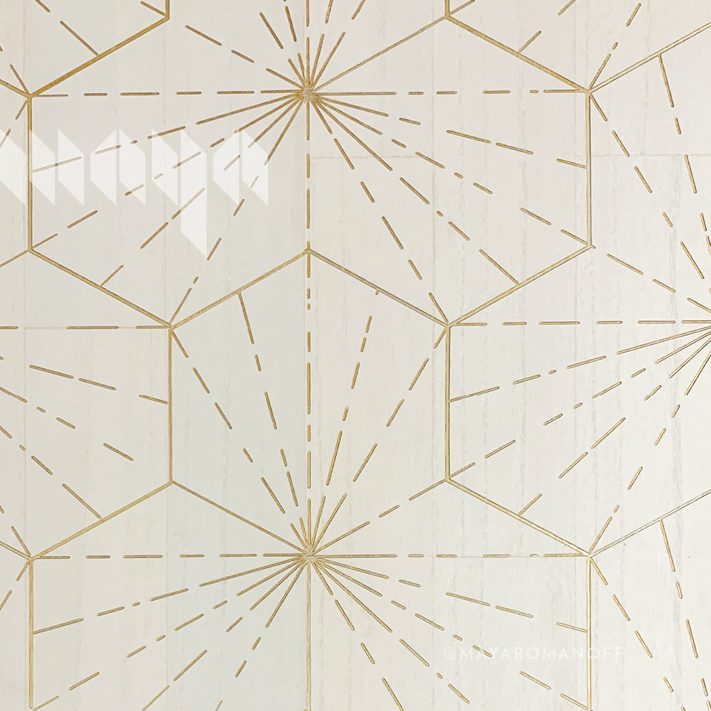 In collaboration with design firm Jeffrey Beers International, Ajiro Burst of Happiness evokes a feeling of euphoria—an emotive and sophisticated wallcovering for any environment. Hand-inlaid paulownia wood veneer is laser-cut to reveal a beautiful, energized stream of metallic foil “bursting” throughout a classical hexagonal pattern. Available in 10 elated colorways.