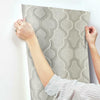 Pattern Modern Ombre Damask overlaps a quatrefoil medallion with an ombre of color and a trellis overlay, accented with metallic, for a geometric approach to classic style. This Ombre Damask Wallpaper measures approximately 27 inches wide by 27 feet long, covering About 60.