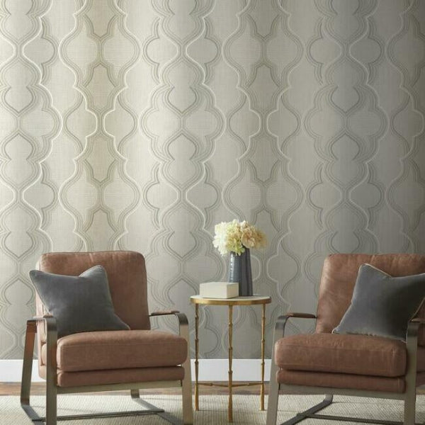 Moire Modern Ombre Damask Beige Silver Wallpaper | Jeffrey Stevens