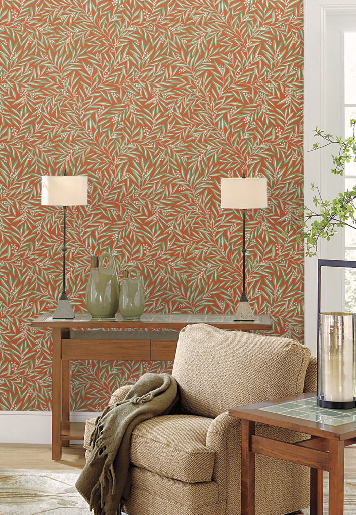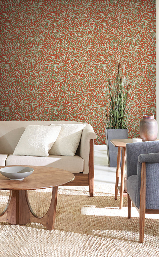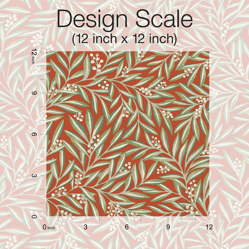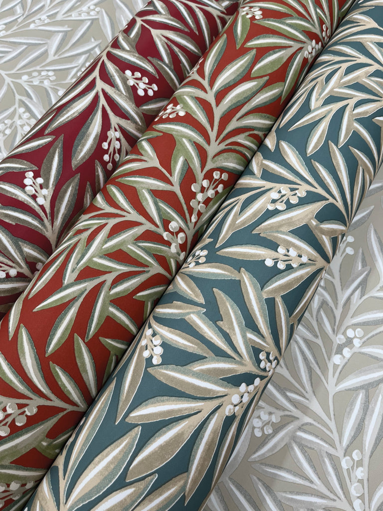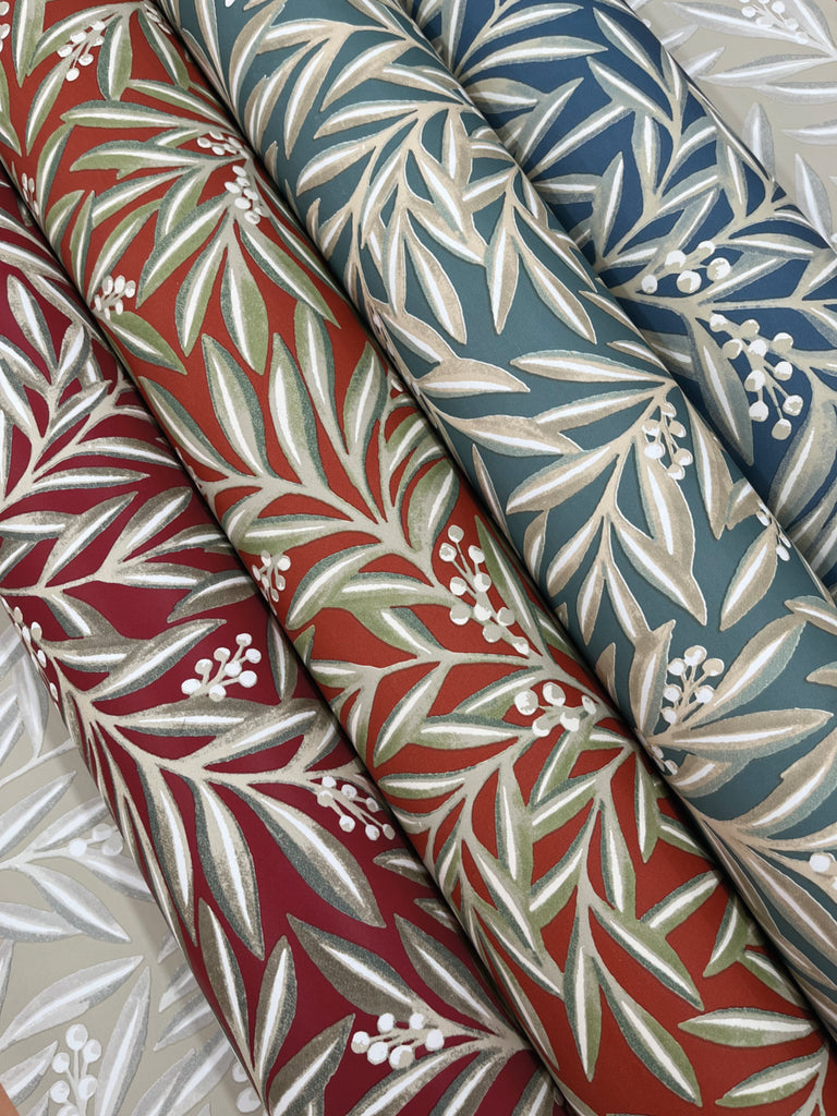 Pattern Rowan, named for the shrub’s reddened fruit, captures the natural themes of leaves and berries in a luxurious toss of layered stems.