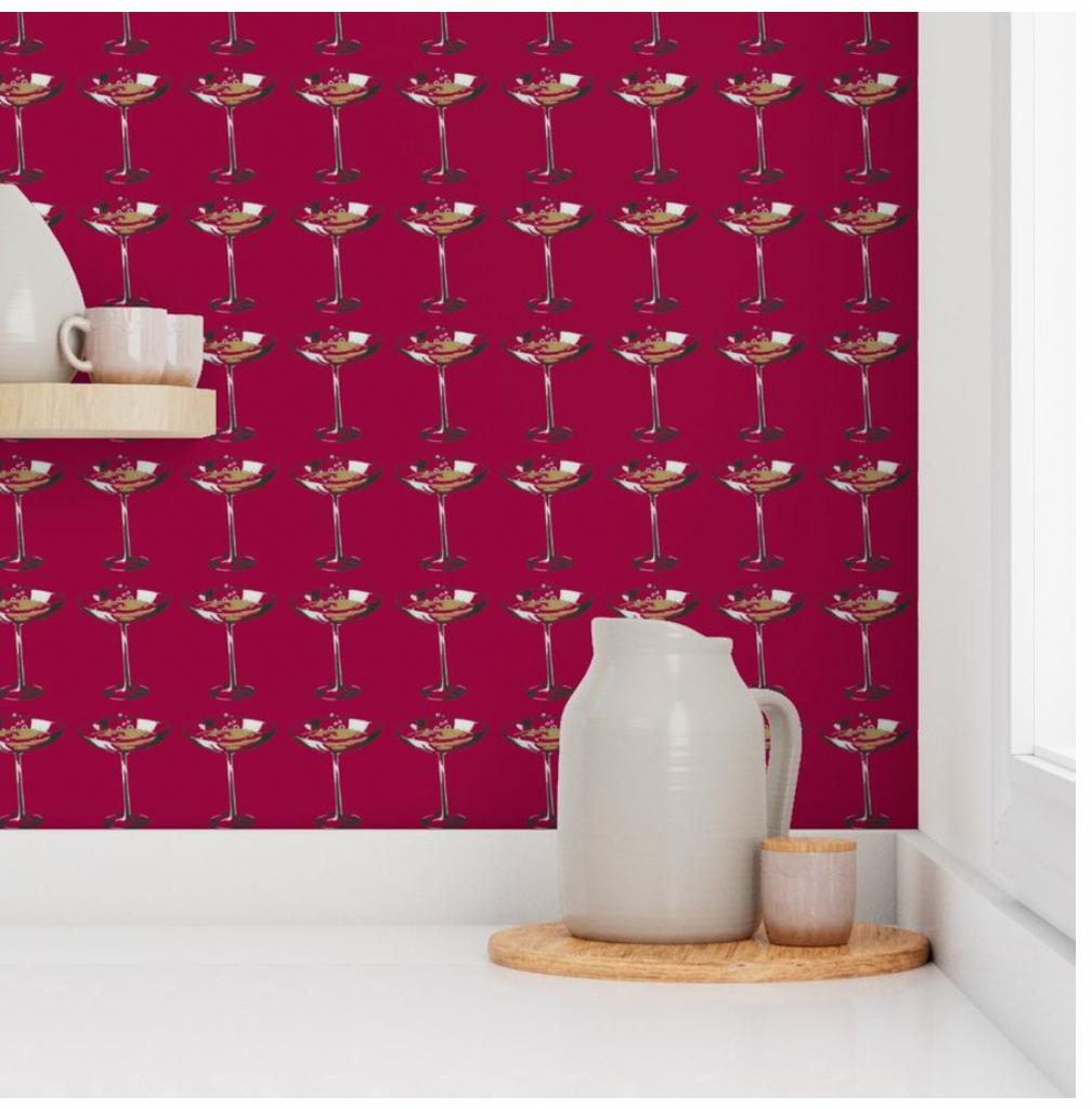 Martini Anyone Wallpaper - Cocktail - Red by DW Bespoke Studios To Go features elegant cocktail glass motifs on a rich red backdrop, exuding vibrant sophistication perfect for stylish interiors. #luxurydesign #wallcoveringstyle #elegantwalls