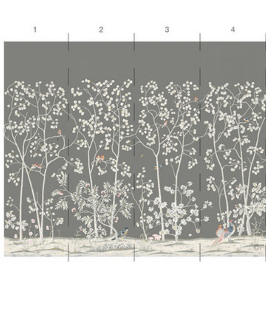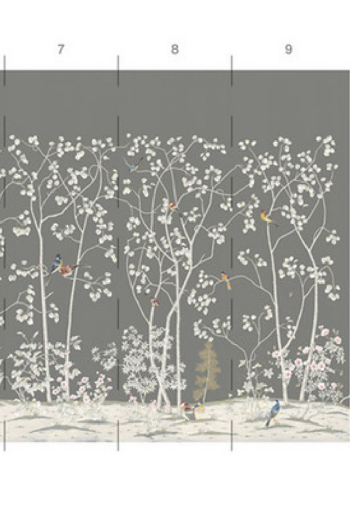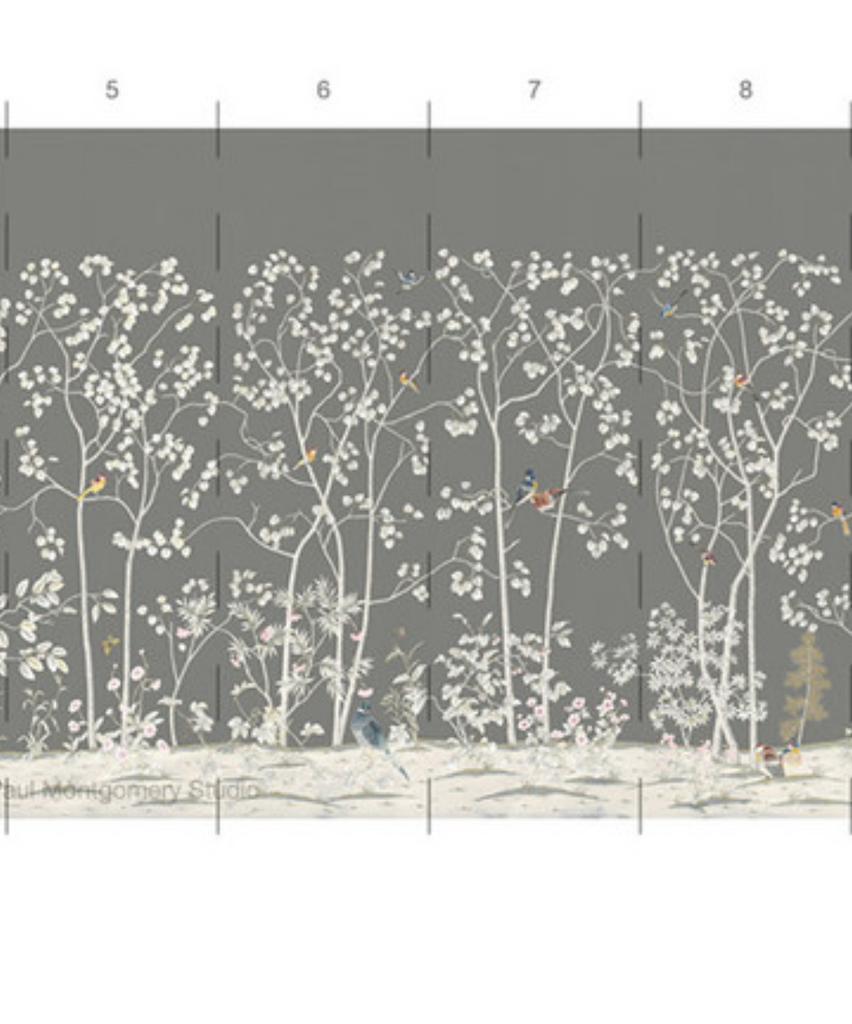 Our Aspens mural was inspired by a Rocky Mountain landscape and is both bold and quiet in its subtle design. 9 Panels Available in Full Length/Headers/Footers, Sold in individual Panels, Width: 36", Design Height: 120", Total Height: 97", Aspens,Paul Montgomery Studios