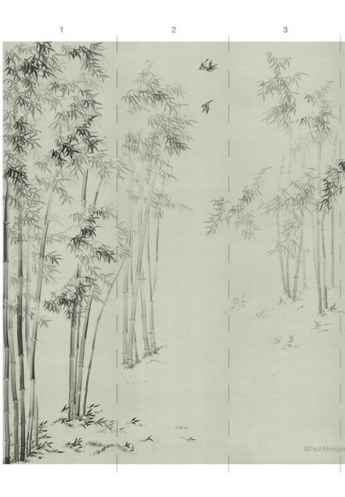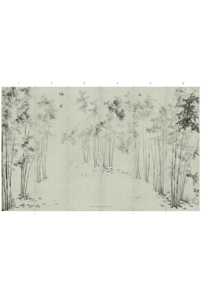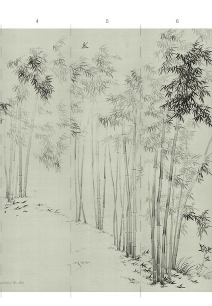 Our amazing Bamboo Forest Chinoiserie mural features traditional Chinese watercolor style with stylized bamboo and birds. 6 Panels Available in Full Length/Headers/Footers, Sold in individual Panels, Width: 30" 36", Design Height: 132", Total Height: 132", Bamboo Forest,Paul Montgomery Studios