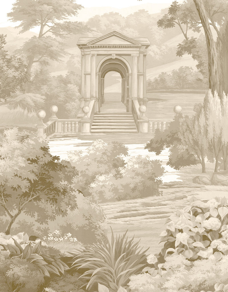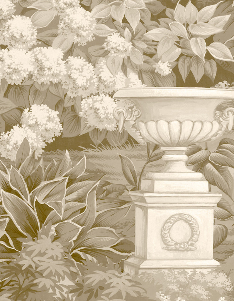 Blue Garden is an elegant depiction of classical English luxury gardens. 10 Panels Available in Full Length/Headers/Footers, Sold in individual Panels, Width: 36", Design Height: 120", Total Height: 120", Blue Garden,Paul Montgomery Studios
