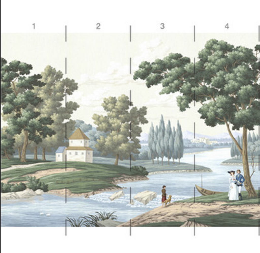 Lush trees, delicate foliage, and scenic architecture unfold in this elegant Bordeaux Full Color Mural by Paul Montgomery Studios. A timeless statement for refined interiors. #luxurywalls #muralart #interiorsinspiration #paulmontgomerystudios
