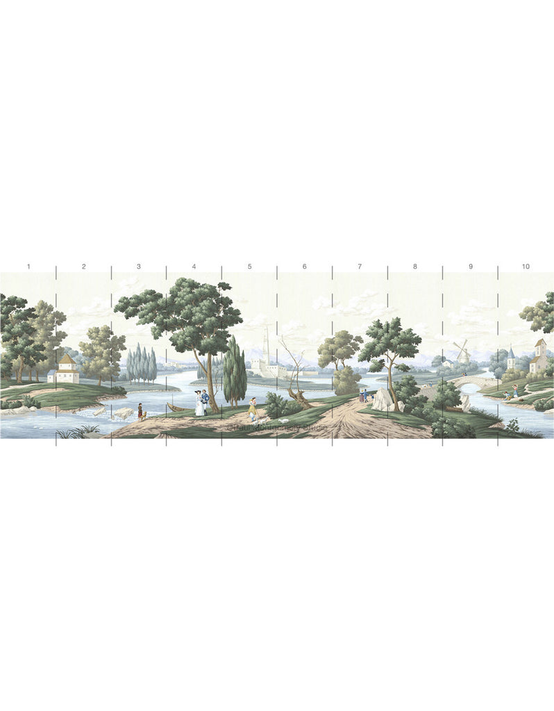 Bordeaux is a romantic view of the French countryside, featuring a quaint and charming riverside scene. 10 Panels Available in Full Length/Headers/Footers, Sold in individual Panels, Width: 36", Design Height: 120", Total Height: 108", Bordeaux,Paul Montgomery Studios