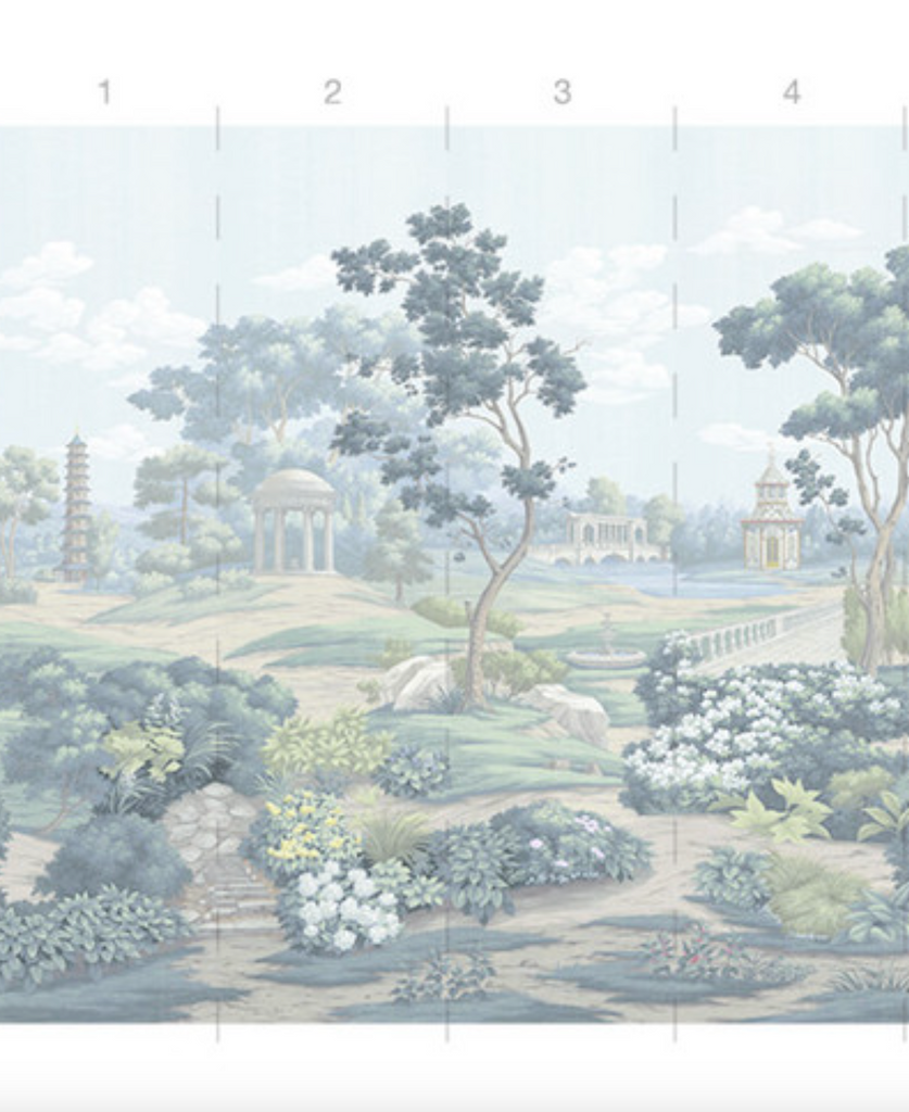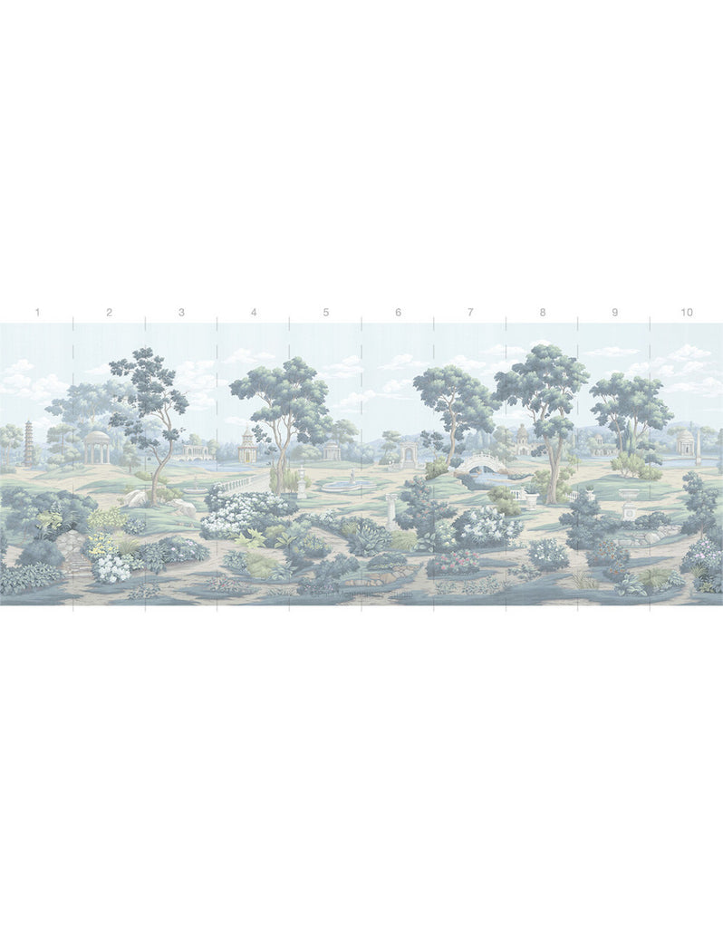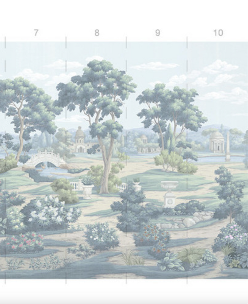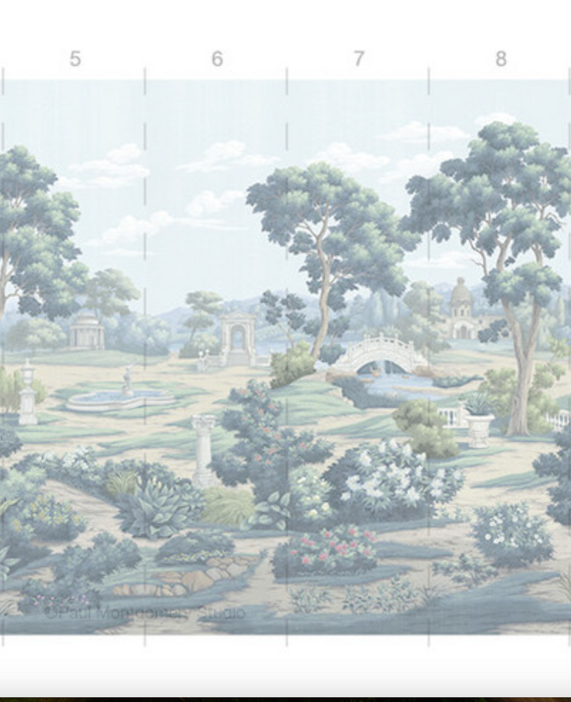 English Parks is an elegant depiction of classical English luxury gardens filled with monuments, fountains, temples, and statues. 10 Panels Available in Full Length/Headers/Footers, Sold in individual Panels, Width: 36", Design Height: 120", Total Height: 108", English Parks Color,Paul Montgomery Studios