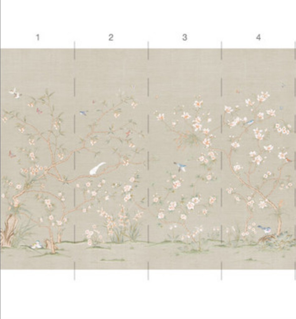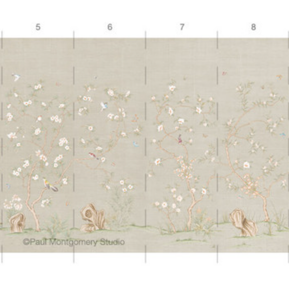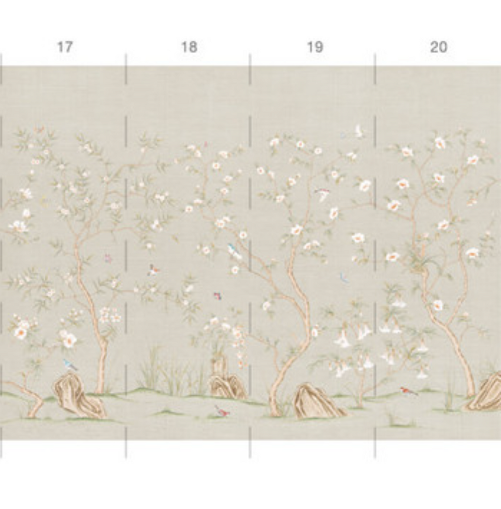 Fenimore is the mural that started it all. Ariel Okin's special color ways for this mural was the beginning of this amazing collection. These natural tones along with these classic chinoiserie styles create a fantastic theme for classic and modern spaces alike. Combined with its 9ft stature and 20 sprawling panels, this mural will create a beautiful, magnificent aura. Custom scaling and sizing available upon request. Samples available in the panel selection menu. Not sure how much product you need to order? Inquire about our Design Diagram service where we can take provided room measurements and determine how much paper is needed to get the best look. 20 Panels Available in Full Length/Headers/Footers, Sold in individual Panels, Width: 36", Design Height: 108", Total Height: 98", Fenimore,Paul Montgomery Studios