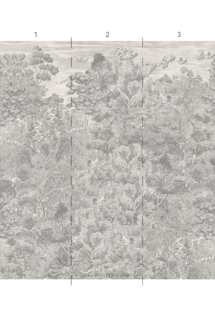 Palace Park is a modern iteration of Chinese etchings. 3 Panels Available in Full Length/Headers/Footers, Sold in individual Panels, Width: 36", Design Height: 120", Total Height: 120", Palace Park,Paul Montgomery Studios
