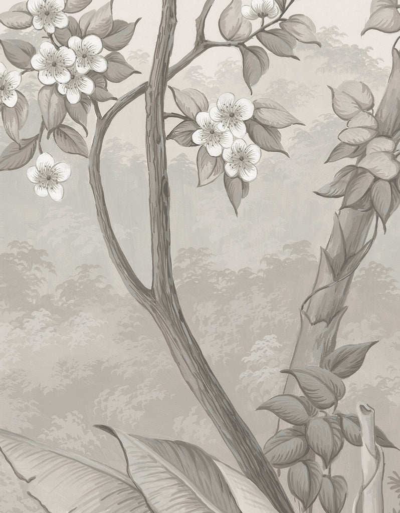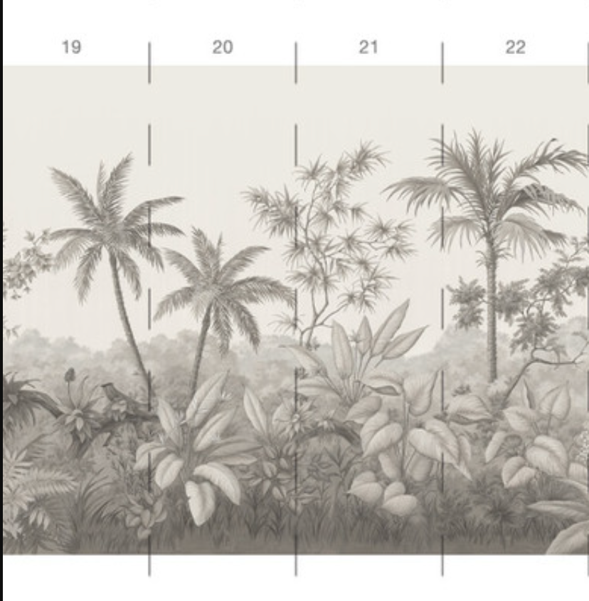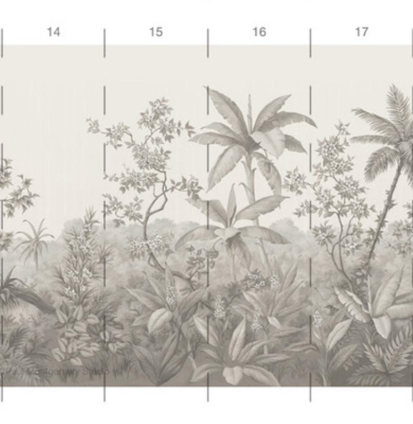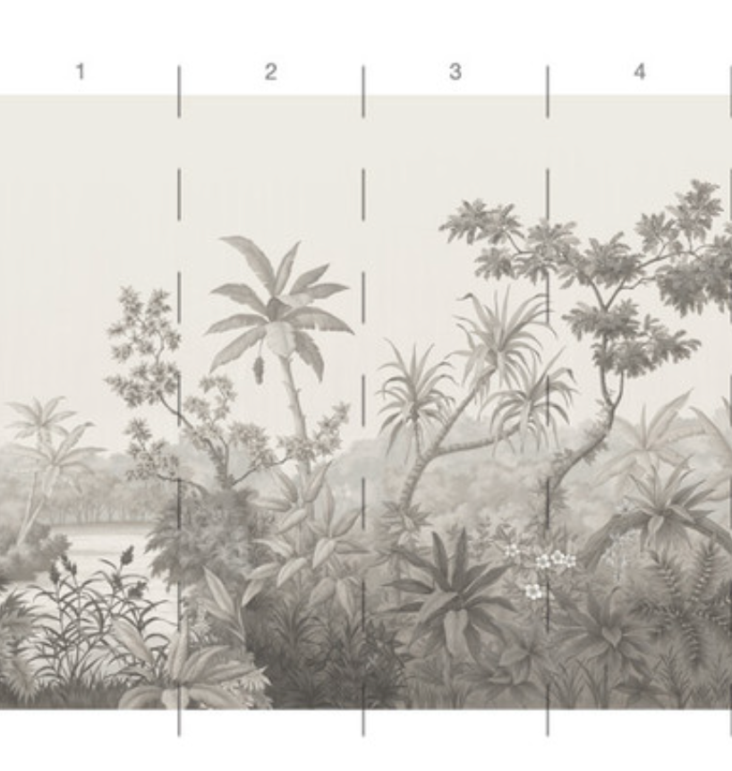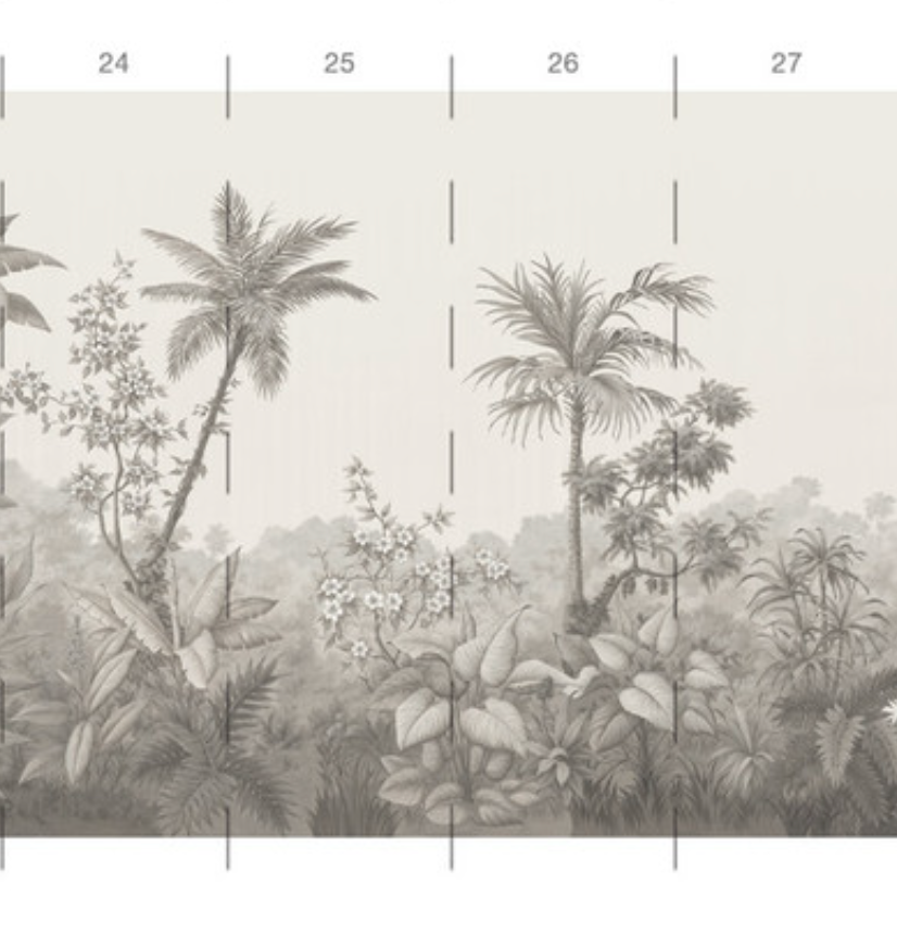 Our Palmera mural is an idyllic landscape of a tropical paradise rendered in Sepia tones. Handsome yet gentle, this view is always an asset to any interior. 27 Panels Available in Full Length/Headers/Footers, Sold in individual Panels, Width: 36", Design Height: 120", Total Height: 108", Palmera,Paul Montgomery Studios