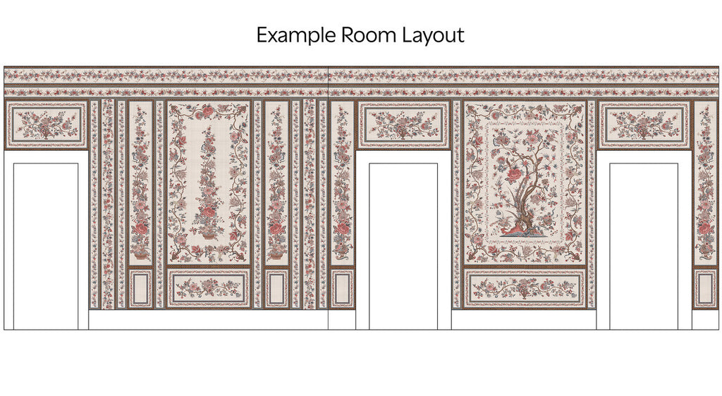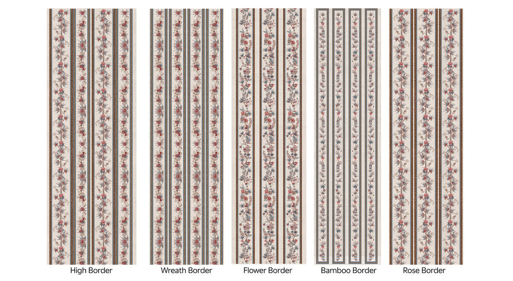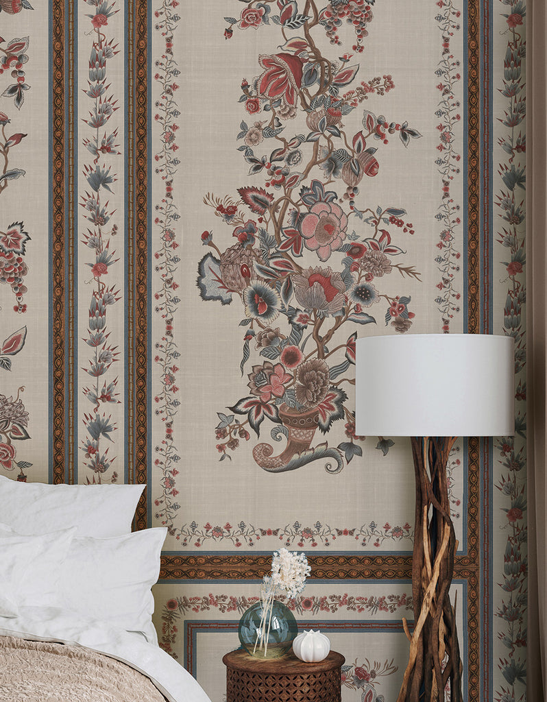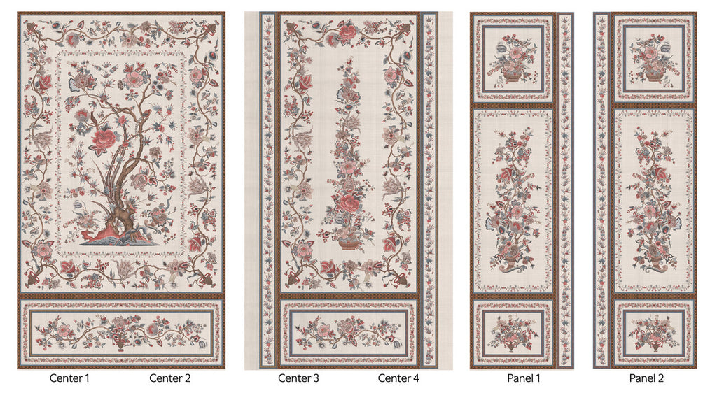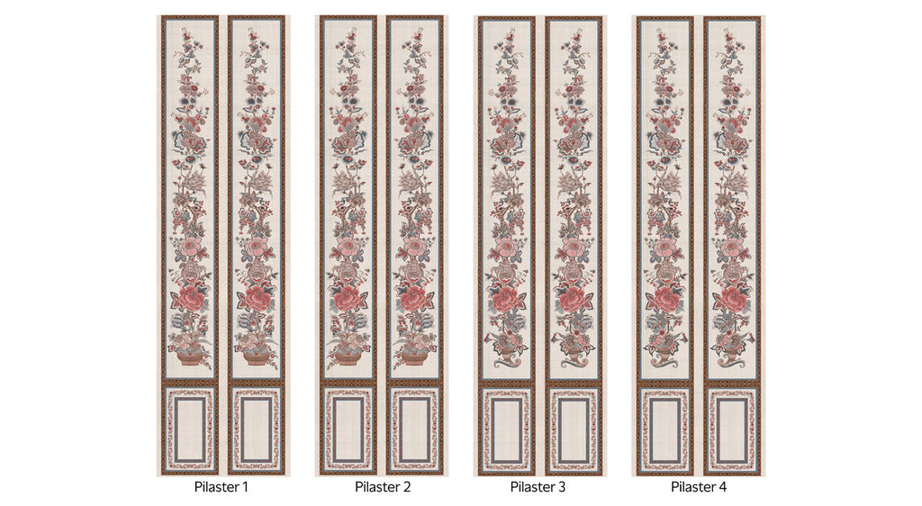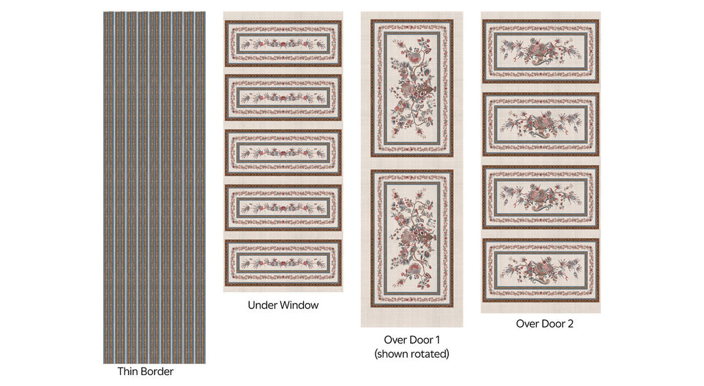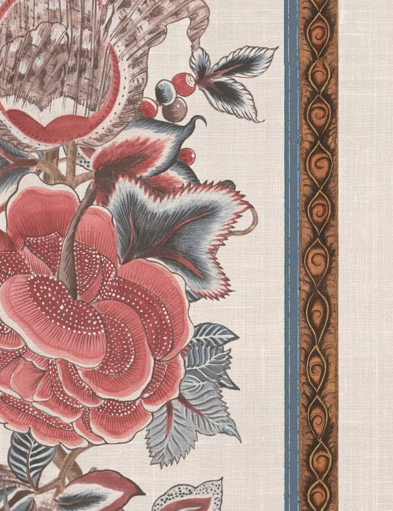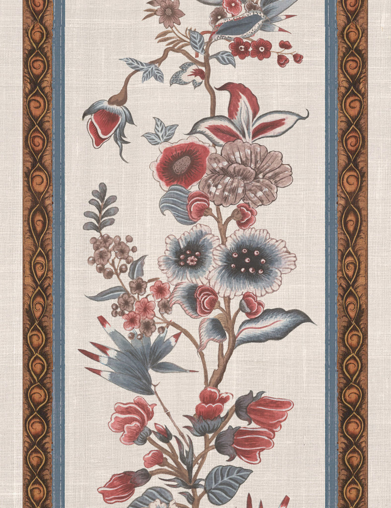 Batavia is inspired by the woven fabrics of East India. Clusters of flowers and grasses float in field of woven threads. The frames are available in various widths to be used in combinations to create attractive compositions. Panels Available in Full Length/Headers/Footers, Sold in individual Panels, Width: , Design Height: , Total Height: , Batavia,Paul Montgomery Studios