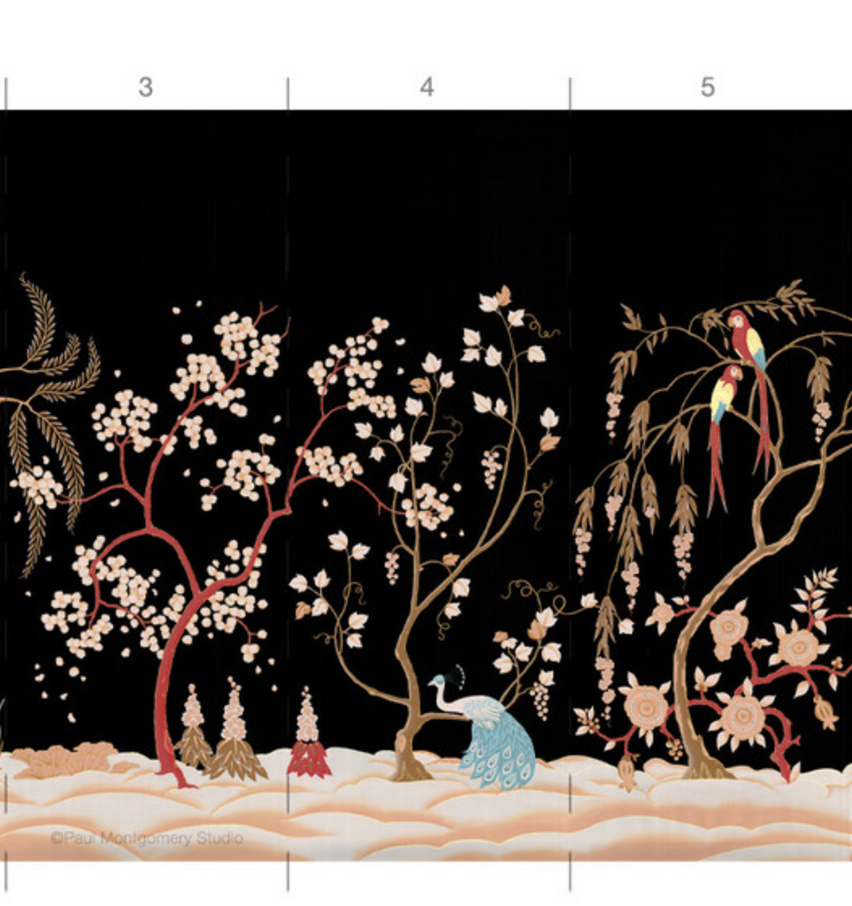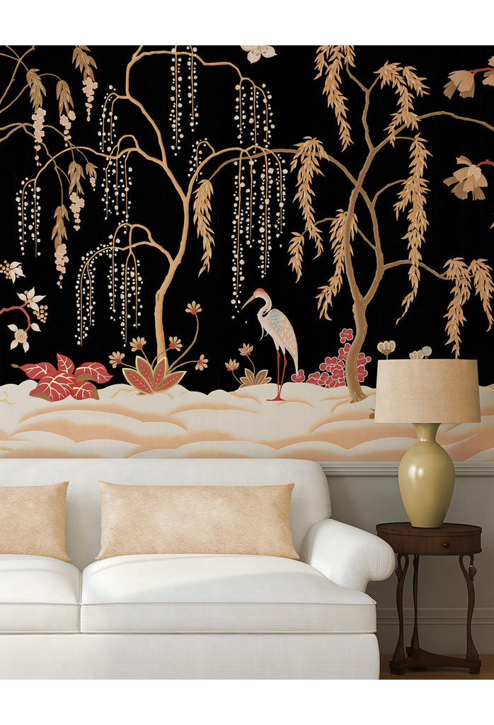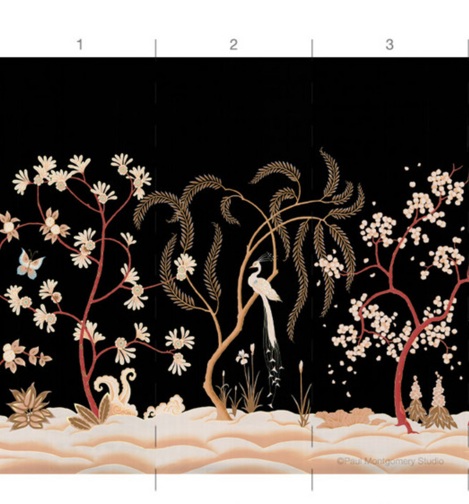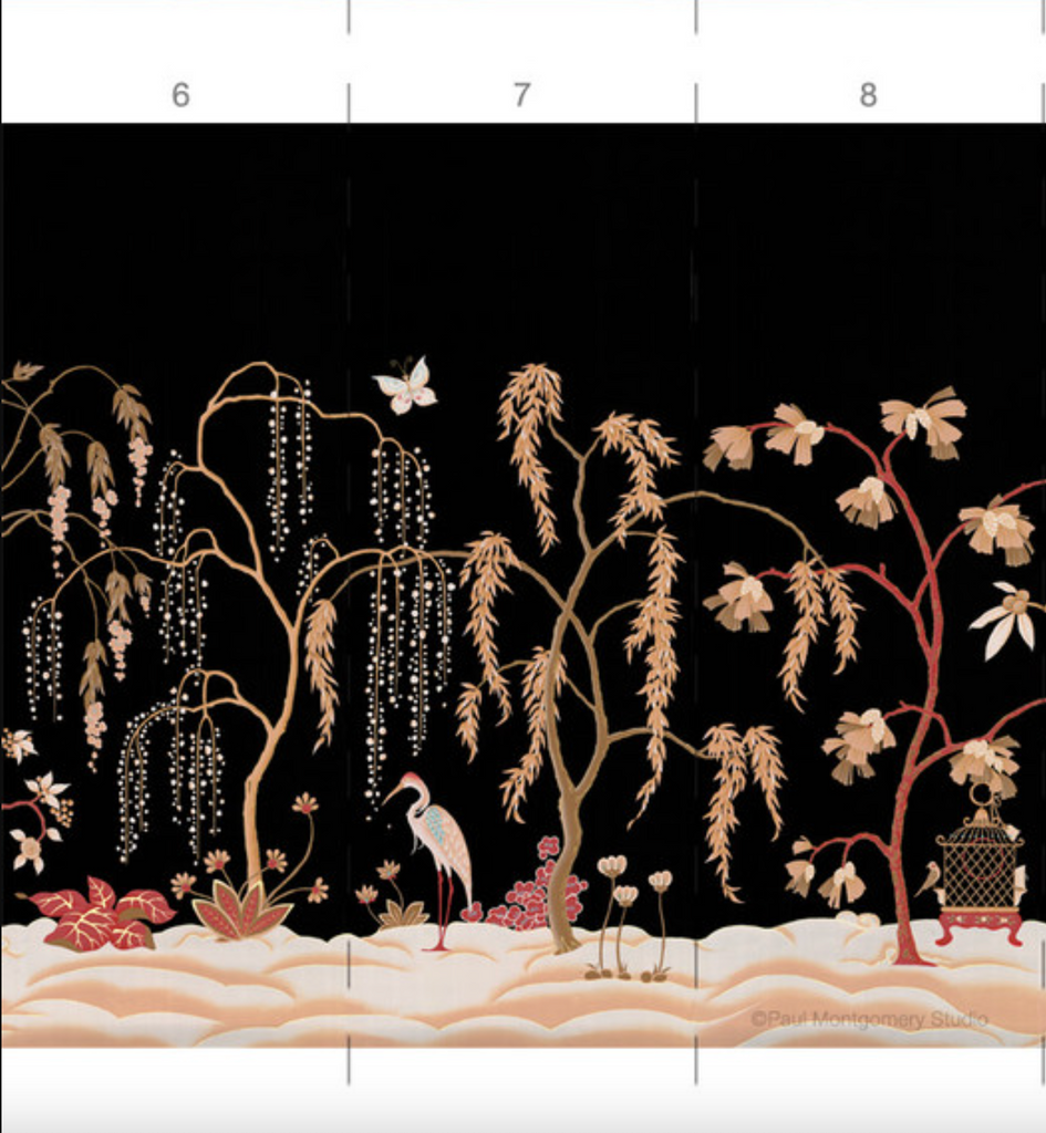 The Ginsberg Black Mural by Paul Montgomery Studios features an elegant abstract design in black hues, creating a sophisticated and dynamic wall statement. Perfect for modern, stylish interiors seeking bold artistic flair. #interiorstyle #luxurywallcoverings #designermurals