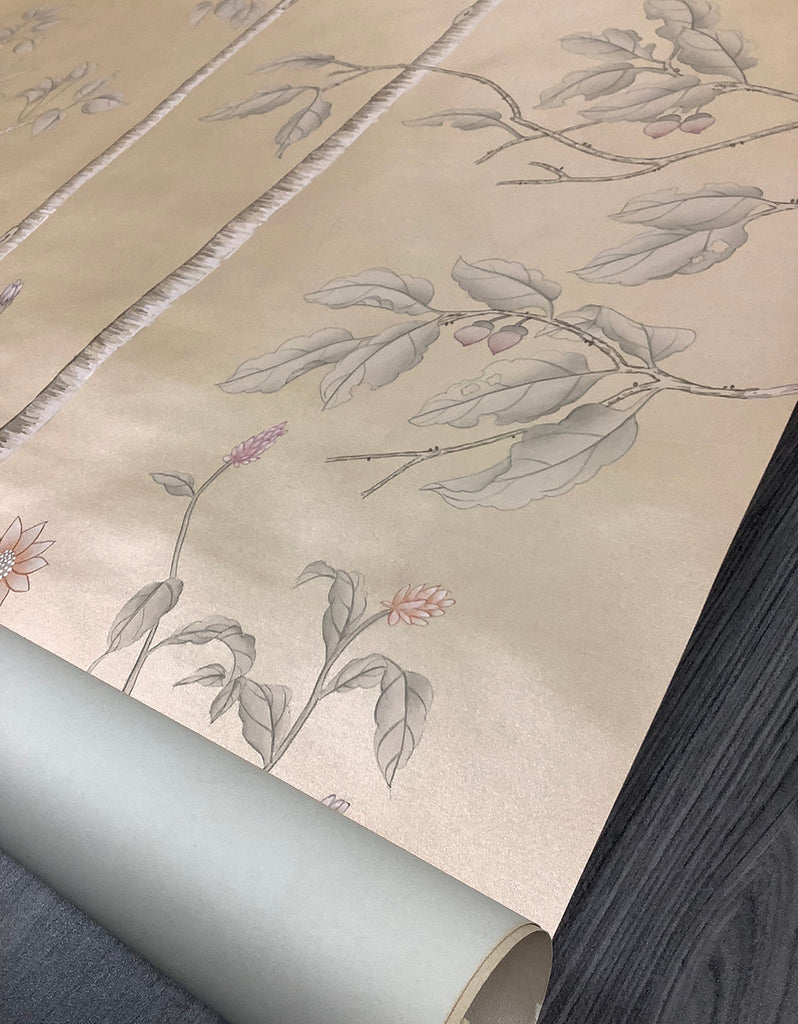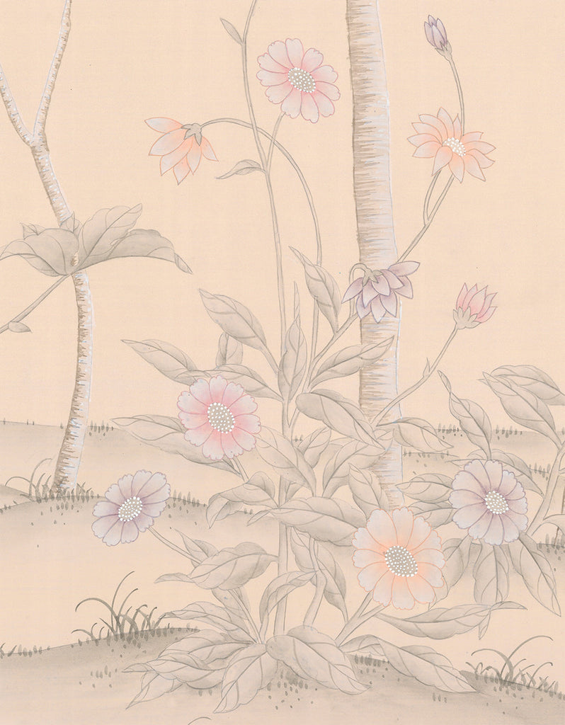 Aspen Pearl Hand Painted Silk by Paul Montgomery Original Art features delicate, shimmering silk textures with soft pearl hues, evoking natural elegance and refined artistry. Perfect for elevating sophisticated interiors. #LuxuryInteriors #SilkWallcoverings #ElegantDesign