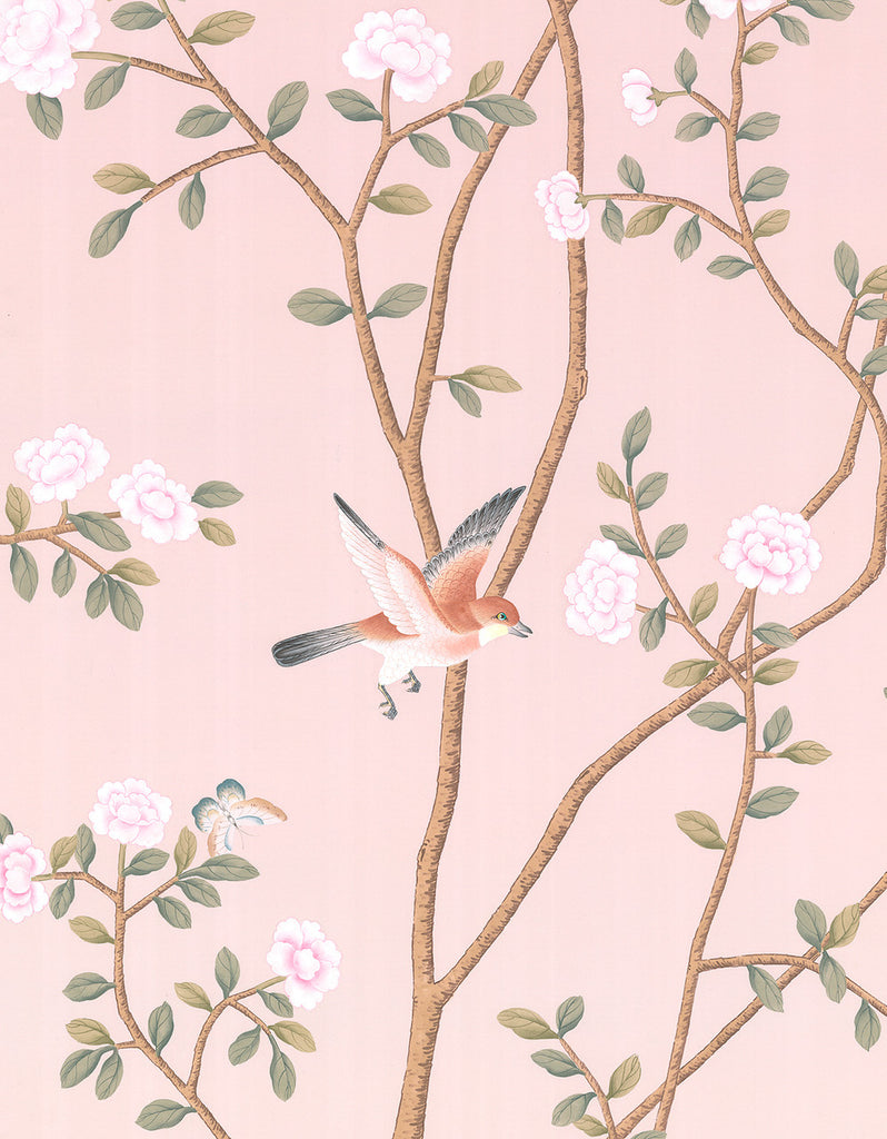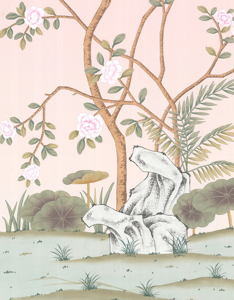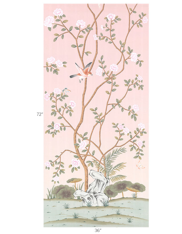 Hype Park is a hand painted panel on a pink paper ground. Panel measures 36" wide by 72" tall. Top of panel has minor discoloration, that can be trimmed or touched up with paint.