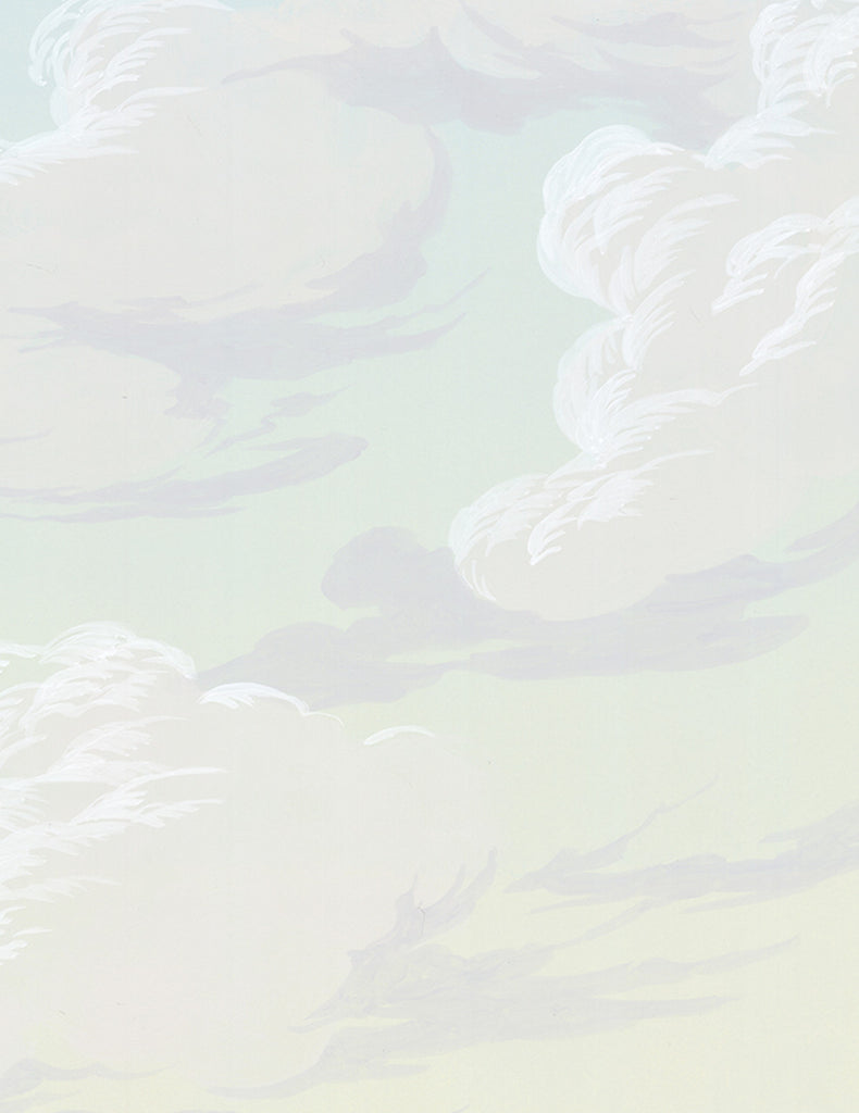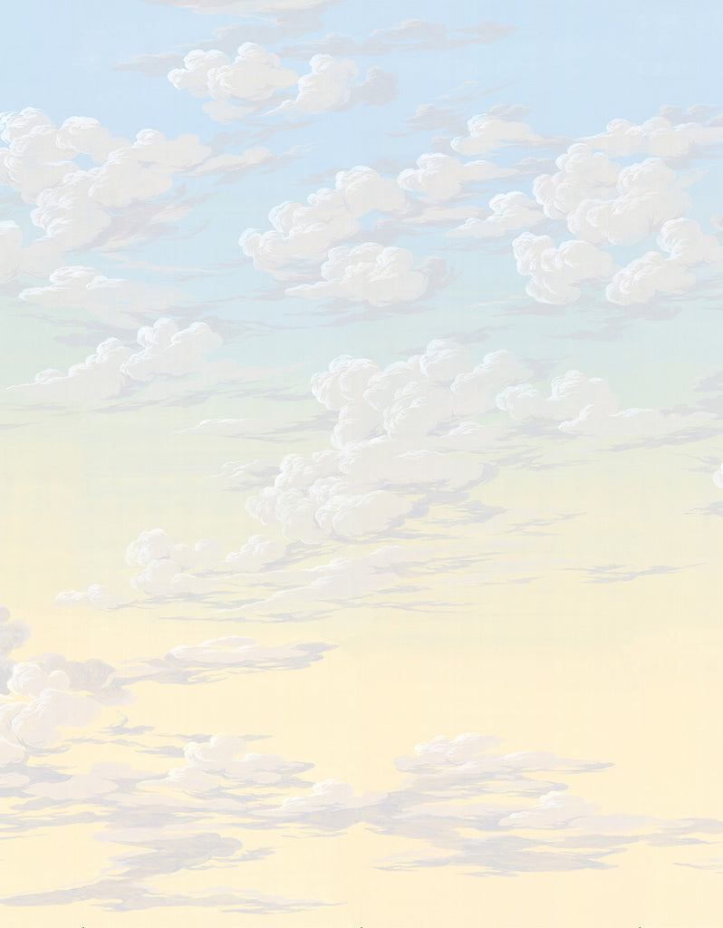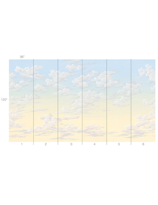 Normandy Sky is a wistful depiction of a colorful morning sky. Clouds roll away billowing in the distance. The 6 panels measure 36" wide by 120" tall, for a full mural of 18 feet wide by 10 feet tall.