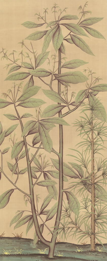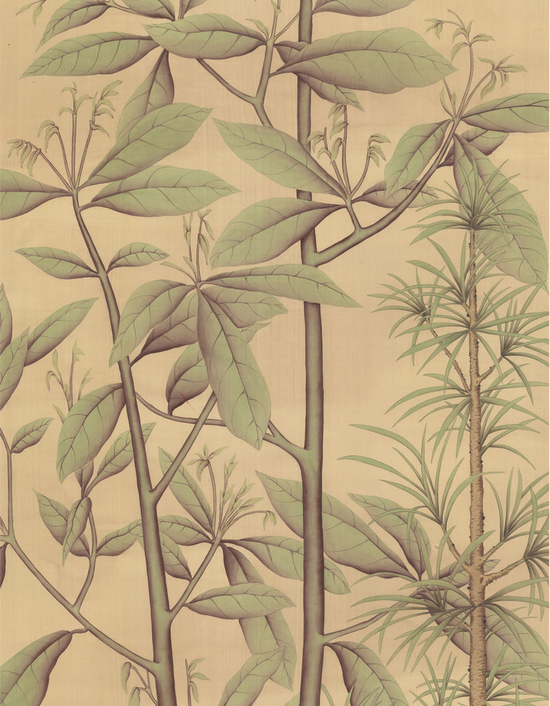 Quiet Forest Tan is a single panel of a green forest. The panel measures 29" wide by 71" tall. Shop items are not considered mint condition, and may contain slight imperfections. All sales are final.