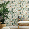 Meadow Cream Menagerie Animals/Insects Peel And Stick Green Red Wallpaper | Jeffrey Stevens