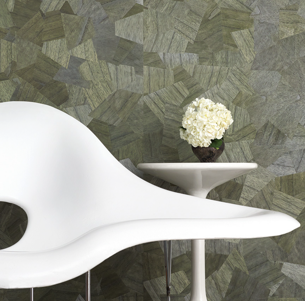 Geometric wood veneers, hand-cut and artfully assembled, form the unique patterns of Origami. This wood wallcovering is a beautiful celebration of a natural material.