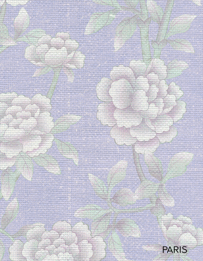 Lavish Peonies Paris Purple Lavendar On Paper Weave Wallpaper | Paul Montgomery