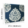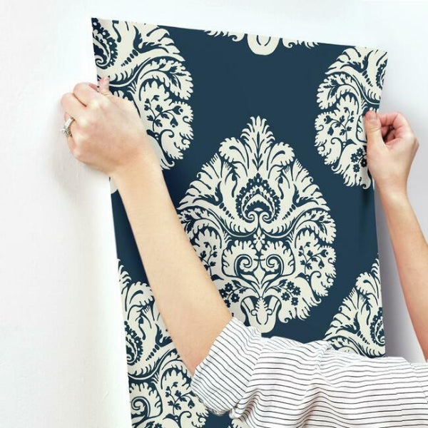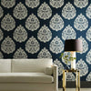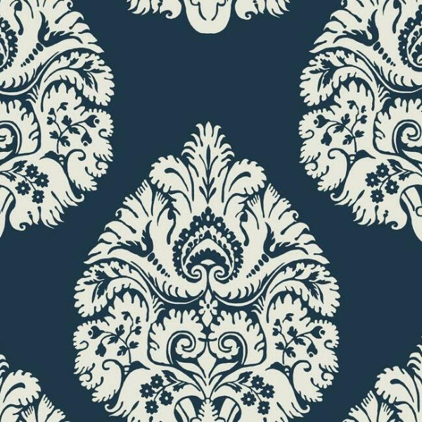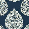 Tanya Navy Teardrop Damask Damask Beige Blue Wallpaper Wallpaper | Jeffrey Stevens