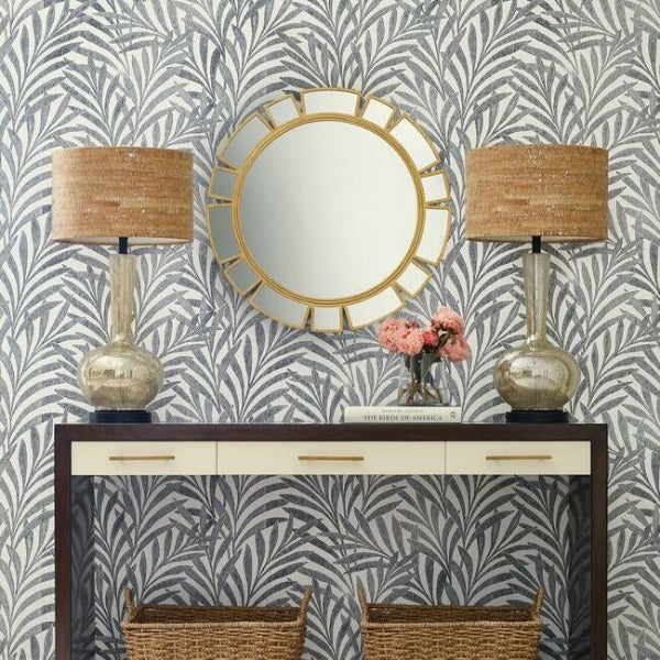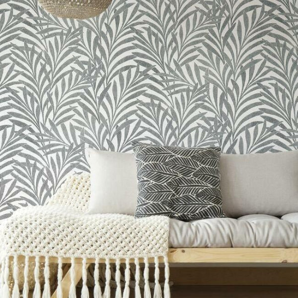 Artistry and style innovations define this collection of exceptional specialties inherent in the luxury of Ronald Redding Designs..The signs are auspicious for a very beautiful room with a grand modern interpretation of a botanical on vaguely rippled sisal textile; this is outsize Tea Leaves Wallpaper.