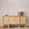 Los Cosmos Disco Wallpaper by Schumacher showcases a dynamic pattern inspired by celestial forms, blending bold shapes and subtle textures for a captivating modern look. Perfect for elevating sophisticated interiors. #interiordecor #luxurywallpaper #elegantdesign