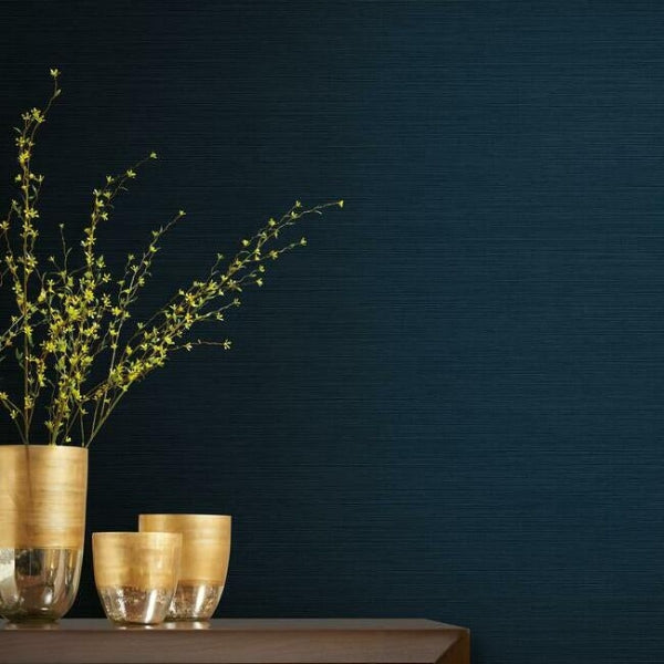 Stephana Blue Shining Sisal Faux Grasscloth Vinyl/Mylar On Backing Beige Blue Wallpaper | Jeffrey Stevens