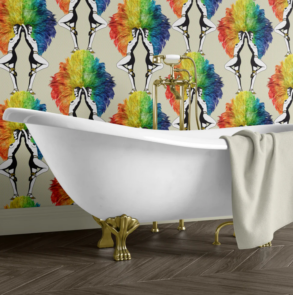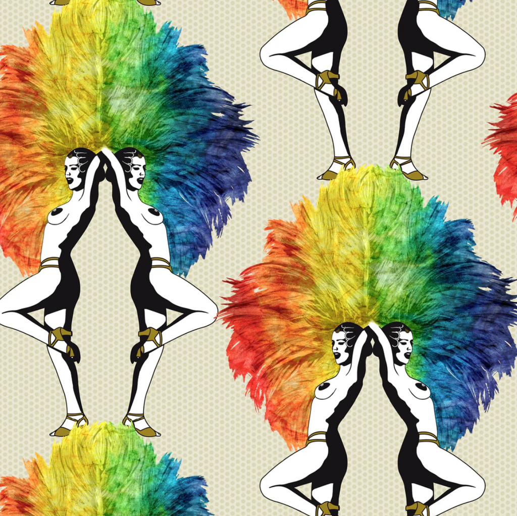 Introducing the Limited Edition Rainbow Show Girls Wallpaper Collection. A fabulous wallpaper design evoking a graphic, contemporary take on a classic Burlesque theme, while maintaining an essence of style and sophistication. Melissa's wallpaper design is a combination of hand painting and digital illustration resulting in an effective and distinctive outcome. Inspired by subculture, Burlesque and Pop Art, Showgirls is a unique wallpaper design suited to making a strong, colourful statement while providing the perfect accompaniment to a sumptuous and glamorous interior.
