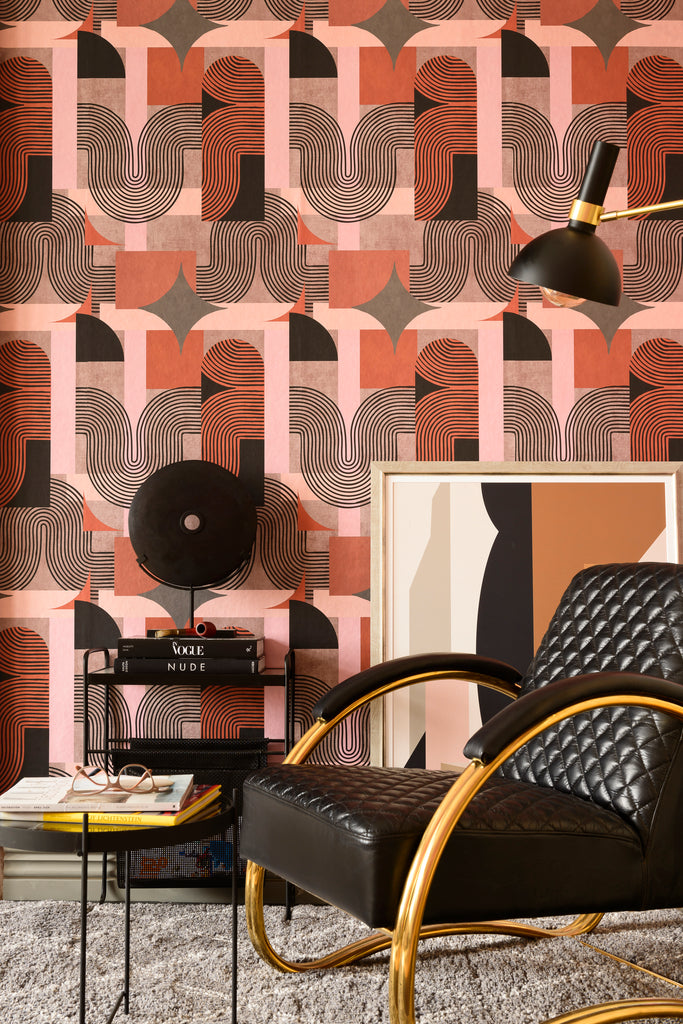 A simple and stylish design with a modern look and soft tone colours inspired by the Mid-Century movement. A sophisticated pattern with geometric elements and large curved stripes in contrasting colours creates a contemporary wallpaper with retro vibes. All Mind The Gap wallpapers are made on new generation non-woven substrate. Printed with eco-friendly inks, Mind The Gap wallpaper are easy to install on any wall type. When hanging the wallpaper, apply the ready-mix adhesive paste on the wall and hang the strips one by one by butting the edges together. The adhesive allows for a while moving the wallpaper strips, so that the wallpaper pattern continues correctly from one strip to another. All our wallpapers are tested and certified for fire rating according to the international legislation. More information and official reports regarding the fire rating are available on demand.