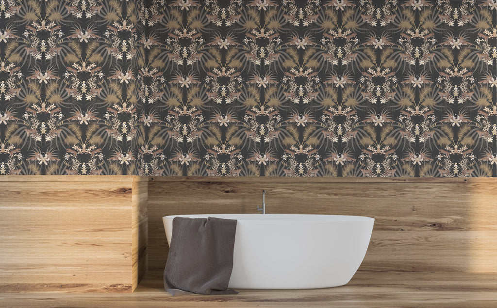 The ‘Leopard Luxe’ wallpaper collection was borne of Becca’s love of juxtaposing wildlife amongst ornament. With leaping leopards amongst golden palms and pineapples, the result is a majestic design of striking elegance, which creates a beautiful focal point in an interior.
