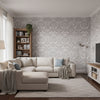 Flocked Velvet, Flocked Wallcovering, Floral, Gothic Damask Flock Grey and Silver, Gray,