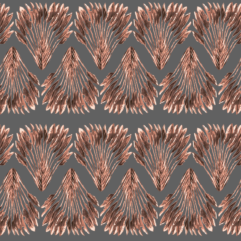 Madagascar Palm Rust Brown Wallpaer | Catchii Netherlands Europe The picturesque pattern is inspired by the palm of Madagascar. It has been given the name “travellers wavy palm” because the leaves collect rainwater that flows into the stems of the plant, ready to help a thirsty traveler. These palms grow enormous. The leaf bases create a playful wavy pattern. Give your interior character with this spectacular design on the wall.