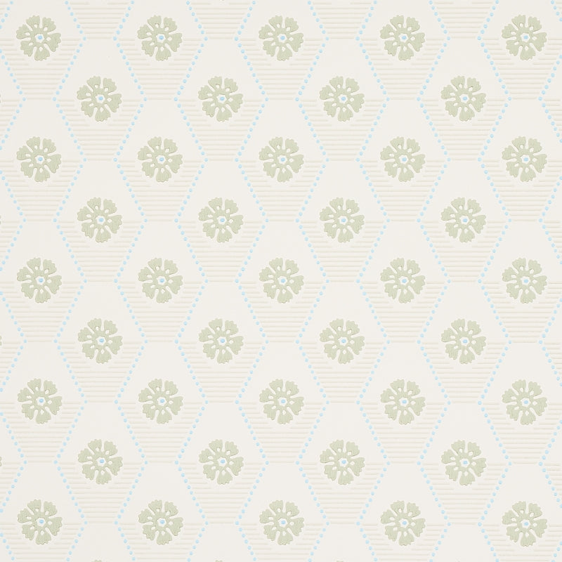 Hive Bloom Sage Wallpaper by Schumacher features a serene sage backdrop with delicate floral motifs, blending nature-inspired elegance with modern style. Perfect for adding a subtle yet sophisticated touch to any space. #luxuryinteriors #wallcoveringdesign #homedecorstyle