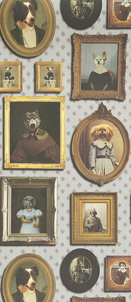 The designer, Charlotte Cory, admits she could never live without a dog, or two, or three. Life is simply not long enough to enjoy these wonderful creatures. So what can be better than a wall full of them! And not just any dog - top dogs! Canines who have had their likeness captured by top portrait artists