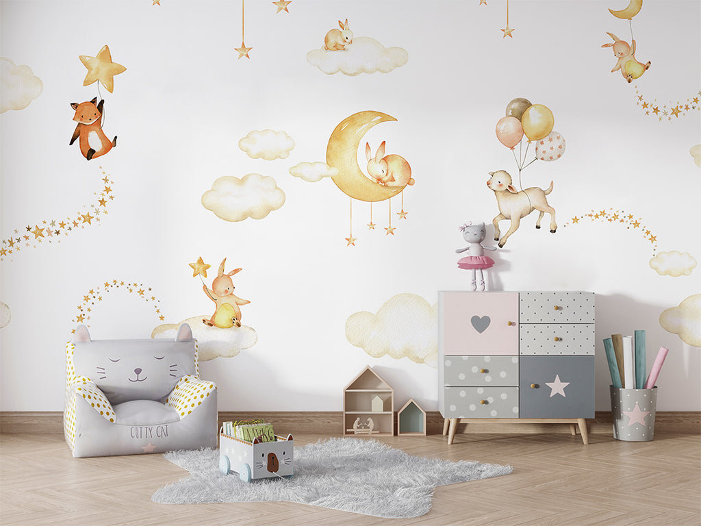 Each new design begins with a carefully considered concept—whether it’s a whimsical garden scene, a dramatic landscape, or a surreal menagerie. Once the theme and style are set, we assign the most fitting illustrator to hand-paint the design’s elements: from exotic animals captured in motion to delicate florals, vast skies, lush trees, and more. Every illustration is painted individually and then seamlessly layered into the full composition.