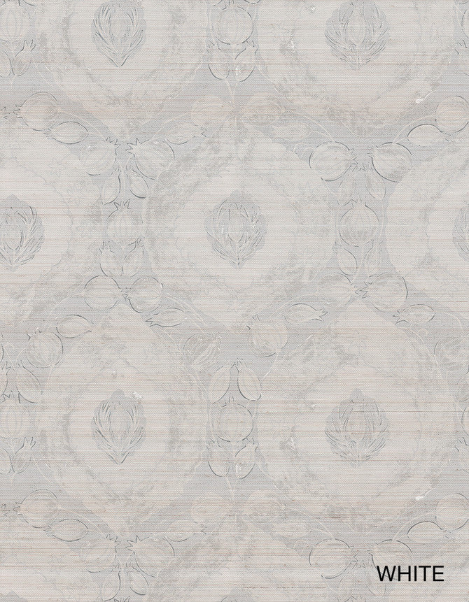The Tulip was an important ottoman motif. Here we see the Tulip surrounded by a modified Pomegranate laurel wreath. Our color ways result in an almost rural or country cottage effect when printed on Sisal grasscloth. Sold in standard lengths from 1 to 4 yards. Pattern is 35" wide after trim by insta