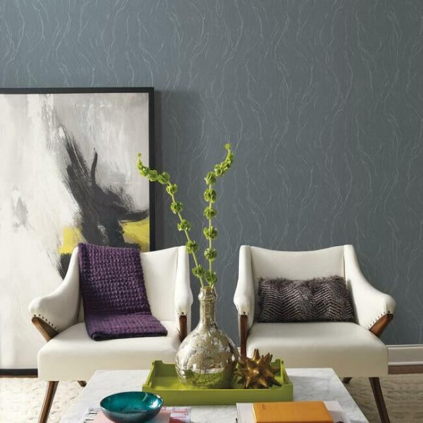 Like molten metal, shimmering rivulets flow, appearing like a river's tributaries viewed from high above the surface of the earth; it's elegant contemporary Upstream Wallpaper. This Upstream Wallpaper measures approximately 27.