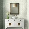 Pattern Boxwood Garden creates pathways through small watercolor leaves to form a modern lattice. This Boxwood Garden Wallpaper measures approximately 27 inches wide by 27 feet long, covering About 60.