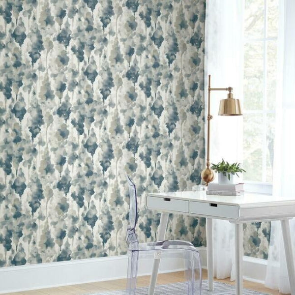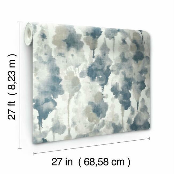 The illusion of a misty woodland appears within clouds of soft watercolor in pattern Mirage. This Mirage Wallpaper measures approximately 27 inches wide by 27 feet long, covering About 60.
