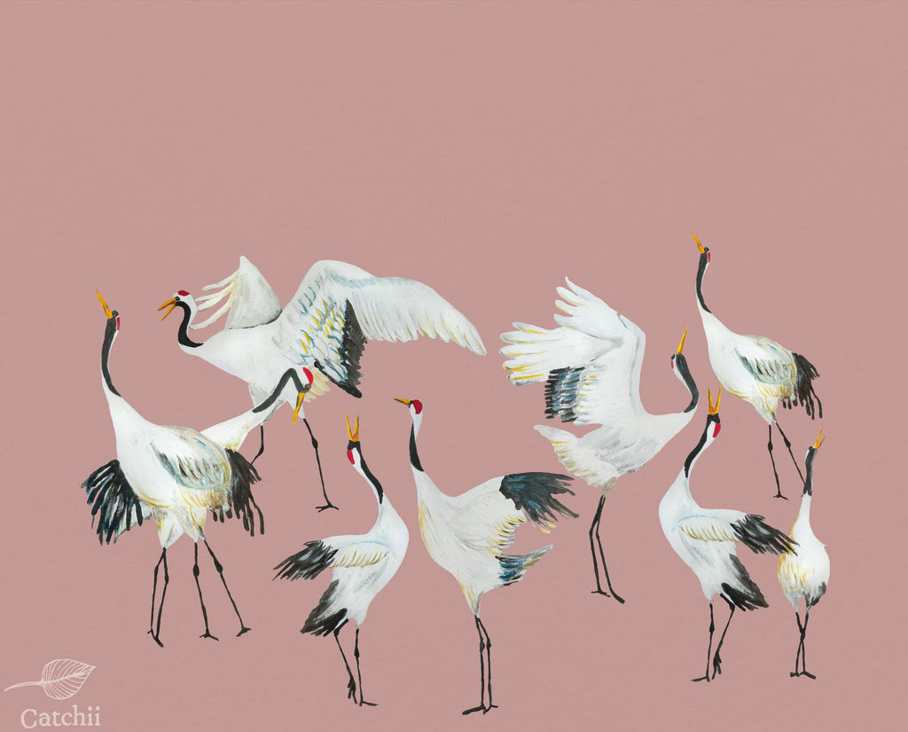 Japanese Crane Dance Pink Mural | Catchii Netherlands Europe