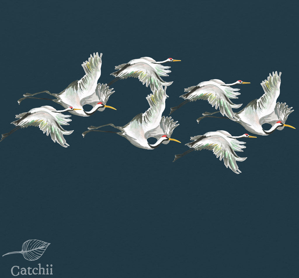 Mural Size 153" x 110" - 3 Smaller Sizes Available This wallpaper with cranes from the ‘Flying cranes’ collection by Catchii is a real eye-catcher in every room and is inspired by Japanese cranes.