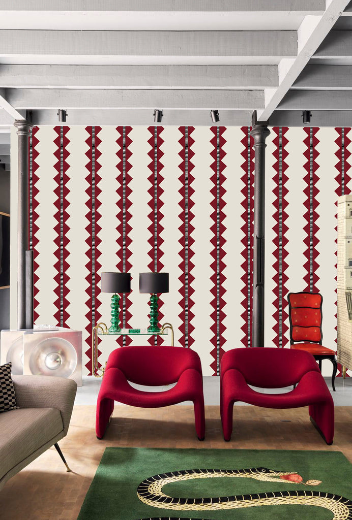 Xalapa Red Wallpaper | Catchii Netherlands Europe The funky pattern of this wallpaper design is inspired by the architecture and textiles of Mexico. The textiles of Mexico have a long history. Fibers used during the pre-Hispanic period are the yucca, palm and maguey plants. Bring this eclectic atmosphere into your home, with our Xalapa wallpaper.