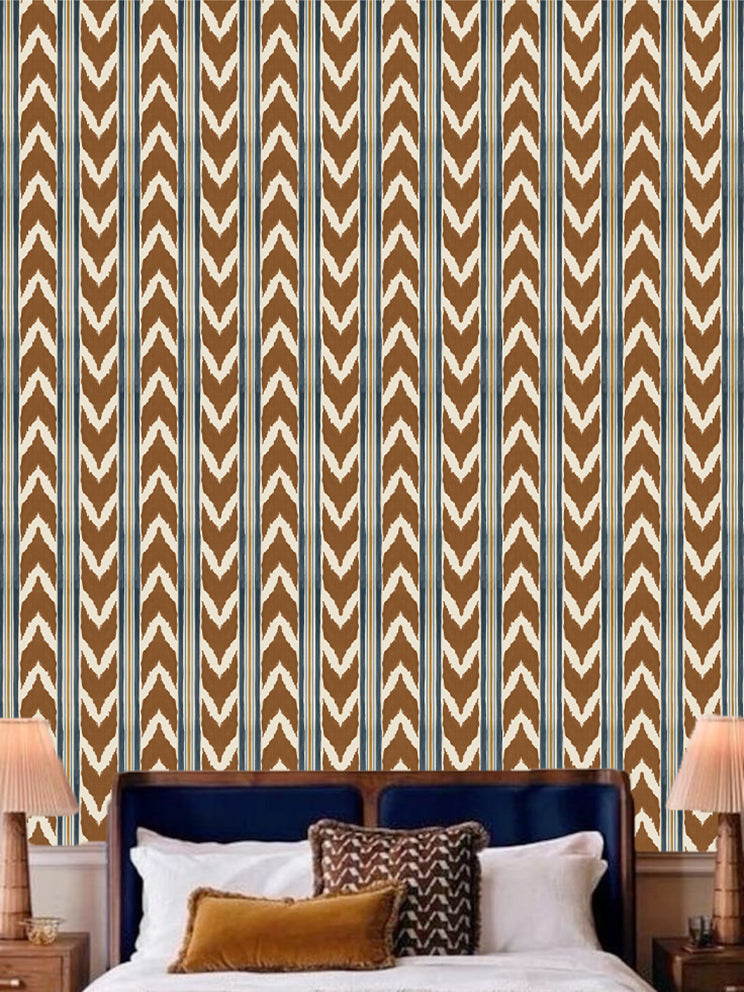 Edgy Ikat Brown Wallpaper | Catchii Netherlands Europe This ikat-inspired stripe will bring a vibrant dose of pattern and a pop of colour to your interior. Great for adding drama and an interesting pattern.